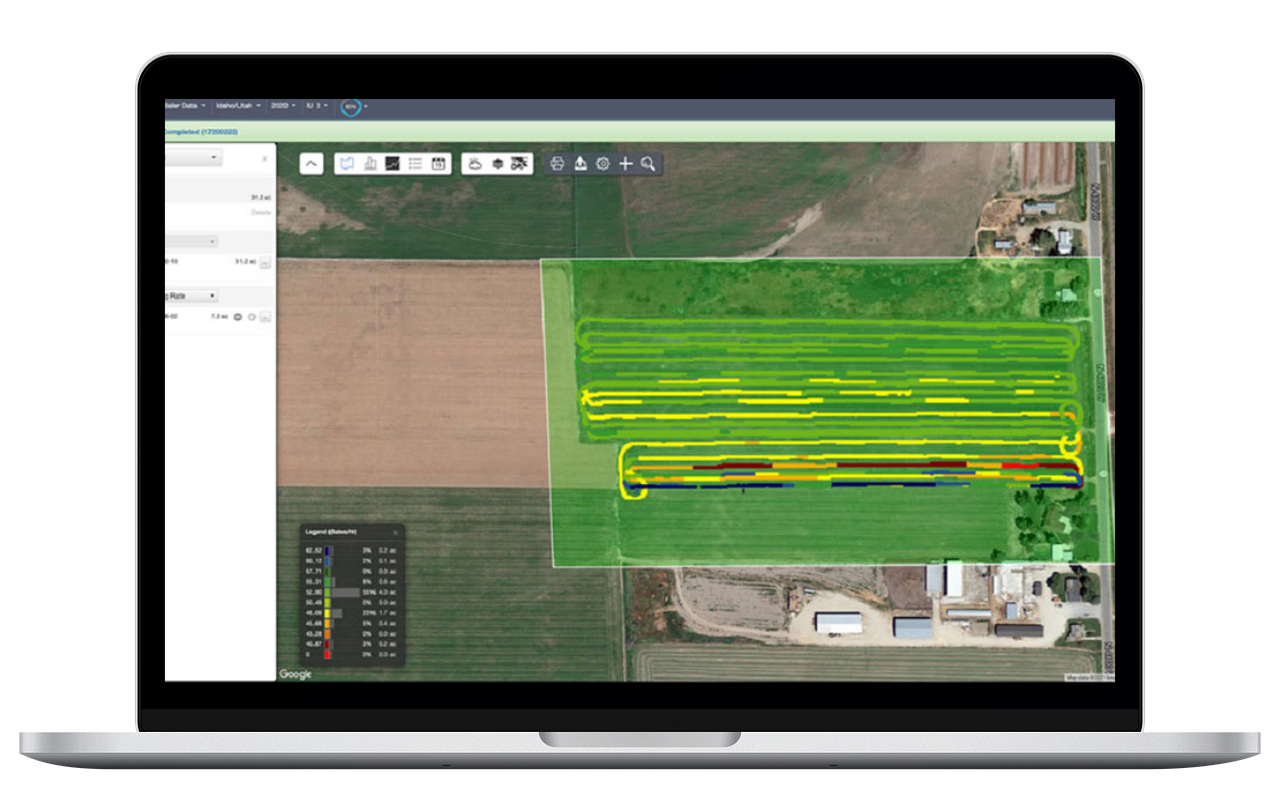 Análisis de datos agronómicos, vea datos agronómicos de la operación, como plantación, fumigación, mapas de cosecha, contornos de campo y líneas de piloto automático.
